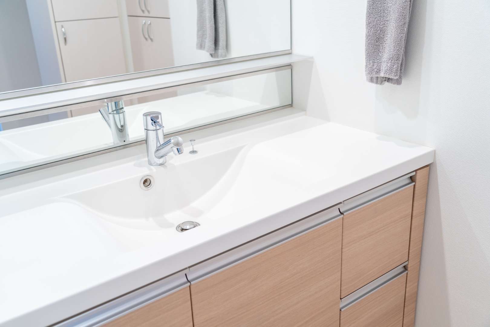 一般的に、洗面台のリフォーム費用は「本体価格」+「工事費」で決まります。幅60cmや75cmの標準的なサイズであれば、工事費込みで10万円台から交換可能です。ただし、収納が引き出しタイプであったり、LED照明付きの三面鏡を選んだりすると価格は上がります。